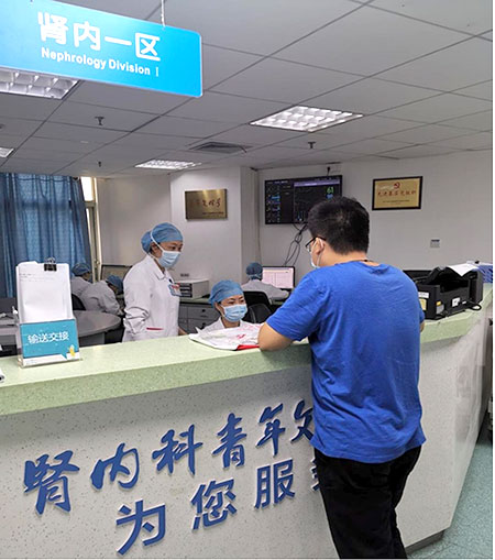为防控疫情避免人流聚集、持续提高我院患者满意度,按照分管领导杨小红和李勇副院长的要求,6月7日上午11点,计财处、信管处及护理部等多部门协作,在肾内一区成功实现第一例病区直接结账,打破原来需要患者“结账部—病房”两地跑的落后模式,将办理出院“搬进”病房,免除患者窗口排队等候之苦。