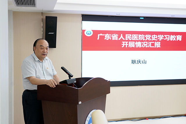 耿庆山书记代表医院党委通报了我院党史学习教育工作进展。他指出,医院党委高度重视党史学习教育,根据上级文件精神迅速制定了工作方案、成立了领导小组,重点开展了“九个一”活动:一是读一本党史好书,已下发《论中国共产党历史》《中国共产党简史》《习近平新时代中国特色社会主义思想学习问答》等书籍,综合临床党总支、肿瘤中心党总支等举办了系列读书会;二是打造了“党史天天学”、“奋斗百年路·学党史”“粤医之声”等党史学习教育平台;三是各党总支和医院层面分别举办了纪念五四运动暨“回眸百年”党史党章知识竞赛;四是全院已开讲专题党课24次;五是通过党史学习教育已收集学习心得100余篇;六是已组织2批次人员赴广东南岭干部学院进行为期三天的红色教育之旅;七是开展“我为群众办实事”一系列暖心行动,院领导及党委委员带头牵头办实事项目33项;八是召开了全院统战工作座谈会以及部分党总支调研会,为医院高质量发展献策助力;九是已收集院领导班子所在支部召开组织生活会的初步时间安排表。