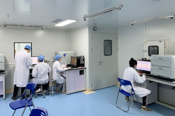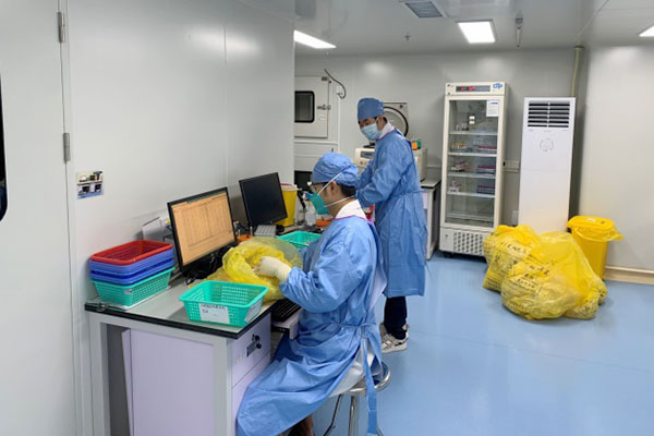 凌晨0点实验室报告核发区和标本处理区忙碌的工作人员