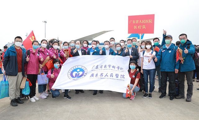2020年耿庆山书记、余学清院长机场迎接支援湖北疫情防控救治任务的广东医疗队员