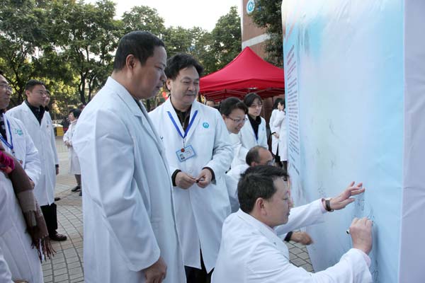 曾国洪表示,在开展群众路线教育实践活动中,省医从一开始就把“改进工作作风、更好为群众服务,让群众得到更多实惠”作为切入点,结合医院实际,突出患者群众利益,努力提高医疗服务质量和水平,着力解决人民群众反映强烈的突出问题。此次举行公开服务承诺、举办“双免”(免挂号、免诊金)服务的义诊活动,就是要以实际行动践行党的宗旨,在端正医德医风、和谐医患关系上做表率,在提高医疗服务质量、引领医疗行业新风上当先锋,助推群众教育实践活动的深入开展。