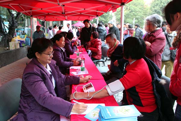 当天上午,来自心内科、泌尿外科、骨科、呼吸内科、消化内科、神经内科等25位医学专家,在寒风中现场为市民进行义诊。服务一开始,免费测量血压、测量血糖及各专家诊台前迅速排起了长队。负责测量的护士姑娘们十分细心,天冷手凉,为了接触手臂时不让市民感到不舒服,在测量每一位前,都先把手搓热。前来义诊的群众患者看了十分感动,居住在附近的梁伯说,“专家为我们免费看病,护士姑娘连一件小事都这么细心,作为一名老党员干部,我真实感受到党对人民群众的关心,我很骄傲,也很欣慰!”据悉,在近三个多小时的义诊中,累计接诊和接受咨询628人次,免费发放健康宣传资料1千余份。