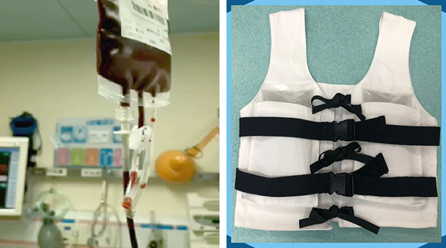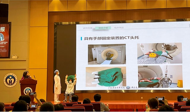 来自儿童监护室董俊超团队的作品《一种婴幼儿输血装置》;放射科李新云团队的作品《CT手部固定托及具有手部固定装置的CT头托》;乳腺二科胡美霞团队的作品《用于乳腺微创手术术后穿戴的医用上衣及医用冰敷装置》获得一等奖。