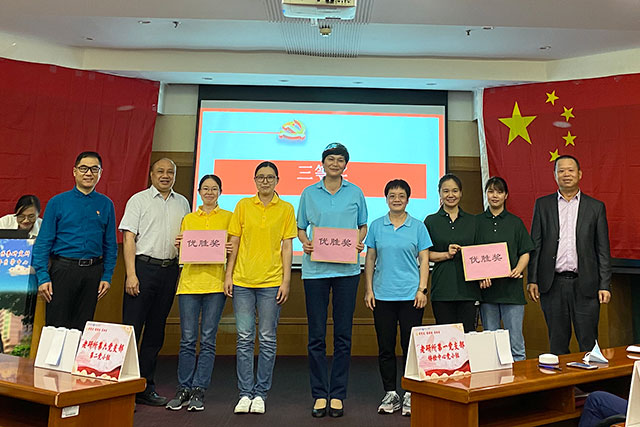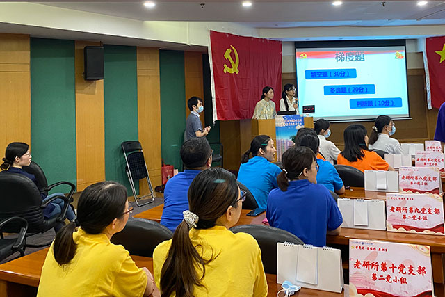 党史知识竞赛共有老研所10个党支部组成的代表队20余名选手参加,以中国共产党成立100周年来的重大历史事件、党的方针政策及理论等为主要内容,由必答题、梯度题、抢答题等赛程环节。比赛中,各支党小组队员精神焕发,志在必得;抢答题环节,选手们反应敏捷,分秒必争;场下的观众也不甘示弱,掌声不断,热情澎湃地分享着比赛的高潮迭起,这场异彩纷呈的党章党史知识竞赛在紧张热烈的气氛中进行,最终,经过激烈角逐,老研所第一党支部第一党小组荣获“一等奖”,其他各支部党小组分获二、三等奖和优胜奖。