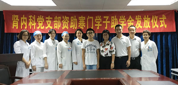内科第三党支部由肾内科全体54名共产党员组成,是医院先进基层党支部。2012年肾内科支部支部成立时立下“为社会弱势群体做实事”的承诺,每一名党员每年捐助一份党费,资助贫困大学生实现求学梦想。4年时间悄然过去,首位获得资助的华南理工大学学生刘同学在校期间不负众望,学习认真刻苦、表现突出,今年以优异成绩获得南理工大学保研资格。对于曾经获得的帮助,刘同学的班主任刘雪华老师表示,广东省人民医院肾内科的党员不但在小刘同学最困难的时候伸出了援助之手,更是给予了巨大的精神支撑和情感依靠,非常很感激。现在小刘已经学有所成,是时候应该自己承担起自己的人生和自己解决家庭的困难了,将来也会以自己的努力回报社会,并希望把你们继续支助自己的这份心意传给现在比我更有需要的学生。