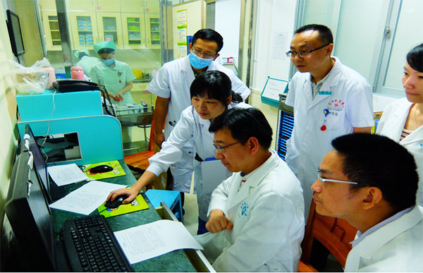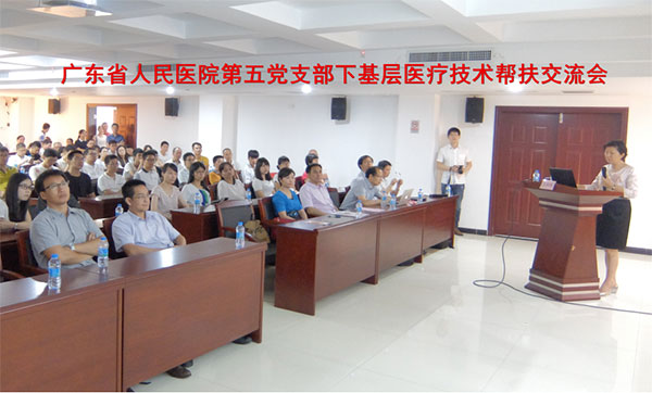 来到海丰,我们在增强党性的同时,也发挥专业所长,将专业知识带到革命老区。次日在海丰县彭湃纪念医院与当地医务人员进行学术交流活动,当天听课人员座无虚席,学习热情高涨。王丽娟所长详细介绍了广东省神经科学研究所的专业特长、新技术开展及学科发展情况。张玉虎主任、段金海主任及代成波主任分别就《2015年MDS帕金森病诊断标准的解读》、《脑血管病一级预防》、《脑血管病介入治疗》作了介绍,现场反应热烈、互动频繁。交流会后,由张玉虎主任及张雄主任分别带专家组,深入病房进行教学查房,开展疑难病例讨论,手把手的传授经验,受到当地医患高度赞扬及充分肯定。
