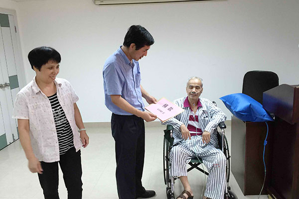 梁耀祺是惠福分院一名默默无闻的后勤工人,有着23年的党龄,从事着医疗尸体前期处理工作,是临床不可或缺的岗位;他多年来工作勤勤恳恳、任劳任怨,深受同事的欢迎;他也是惠福分院推荐的院劳模候选人,医院微电影《家》的原型角色。梁叔一家三口均在我院的临工、后勤岗位工作,收入低微。不幸的是, 2015年,梁耀祺体检被确诊为肺癌。一年来的巨额检查、治疗费令这个本来就拮据的家庭更是雪上加霜。