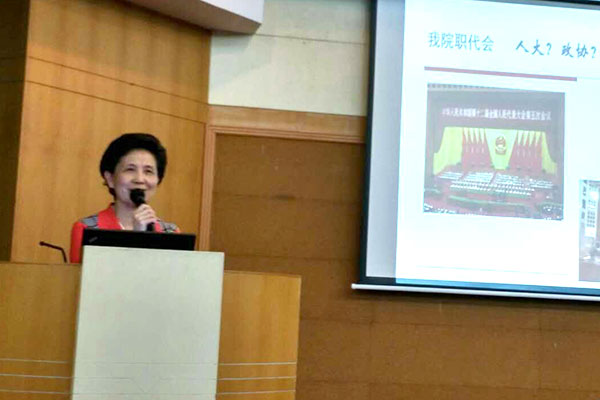 本次活动最为精彩的内容当属王启仪副院长参加两会心得体会的分享:任全国政协委员的王院长一起回顾了十年政协工作、几届参加两会的光荣历程和所见所闻,并更为具体详细地传达了此次“两会”关于医改的精神,“身在基层,心系国事”,结合工作中的实际情况及收集大量调研资料,为国家医改献计献策,她的许多提案因为反映的问题有普遍性、代表性,且调研实、质量高,从而被相关部门采纳,被誉为“听民情、知民盼、解民忧”的两会代表。王院长鼓励大家,作为老年医学研究领域的医务人员,要结合自己的工作岗位,乘着两会对医改和养老等社会保障问题相当关注的东风,为老年医学研究作出更大的努力。