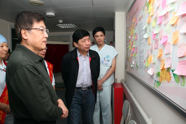随后,亓副书记一行参观了CCU国家级青年文明号,认真听取号手介绍CCU创号历程和创建成效,饶有兴趣地看了CCU的“温馨之家”照片墙。亓书记对CCU创号工作给予高度评价,他指出,CCU不仅要把国号这块牌匾挂在科室墙上,更要挂到每个人心上,这样才能不断创新,继续进步,一直保持好荣誉。同时,他勉励CCU通过创号,为医疗行业做好先锋模范。
