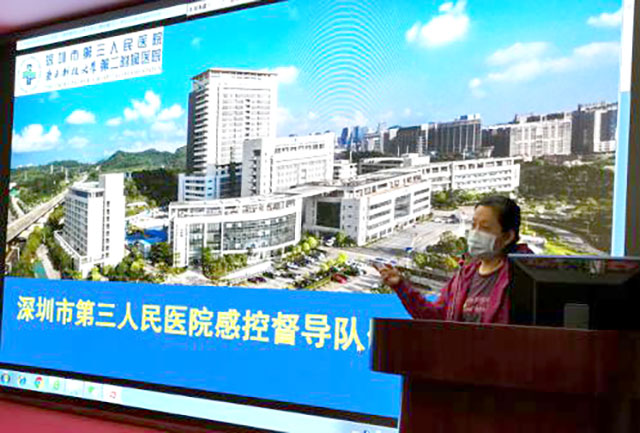 医务处白雪皎同志做了《深圳三院支援抗疫工作小结》主题报告。疫情期间,她前往深圳三院(深圳地区唯一收治新冠病人的医院)督导支援。当时,深圳市委市政府本着“宁可备而不用,不可用而不备”的原则,紧急建立深圳三院应急院区,扩容深圳新冠肺炎疫情医疗储备,一个全新的应急院区在短短20天时间内便设计建成。“我与院感科、护理部的同仁们一起在应急院区现场梳理医务人员和患者的入出通道、医务人员穿脱防护用品等流程,我们一遍遍地模拟、一遍遍地推演,目的是制定符合院感防控要求且规范合理的工作流程,规避因为硬件或流程设置不合理而引发交叉感染的风险。”