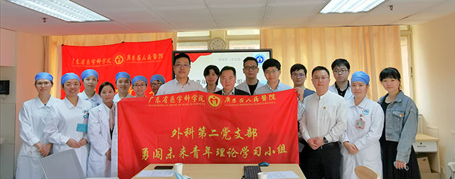 “勇闯未来”青年理论学习小组由22名胃肠外科40岁以下优秀青年同志组成,包括6名医生、14名护士和2名工勤人员组成,由党支部书记王俊江同志担任青年理论学习小组辅导员,由郑佳彬同志担任小组组长,胡伟贤同志担任小组副组长。成立仪式后青年理论学习小组与所有支部党员一起学习卢永根同志先进事迹,并就卢永根同志身上展现的政治品格和精神境界相互交流了心得和体会。