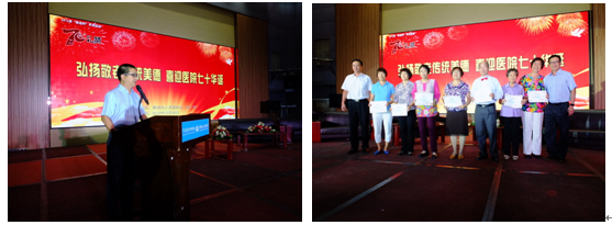 首先,邓南处长向离退休老同志转达了庄建院长、耿庆山书记的诚挚的问候,两位院领导感谢老前辈既往对医院建设作出的贡献及对现在工作的支持,对于院领导的问候,大家报以热烈的掌声以示感谢。张念樵书记代表医院党委及全体在职职工向离退休老同志致以节日的问候和美好的祝愿,他充分地肯定了老前辈们在我院的建设中起到重要的作用,汇报了医院近期的发展情况。为表扬老同志老有所为、老有所乐的精神和生活态度,本年度特设立优秀团队奖、“老有所为”奉献奖、书画大赛奖、“老有所为、老有所乐”积极分子四个奖项,同时表彰医院优秀共产党员和颁发满50年及以上党龄纪念章。