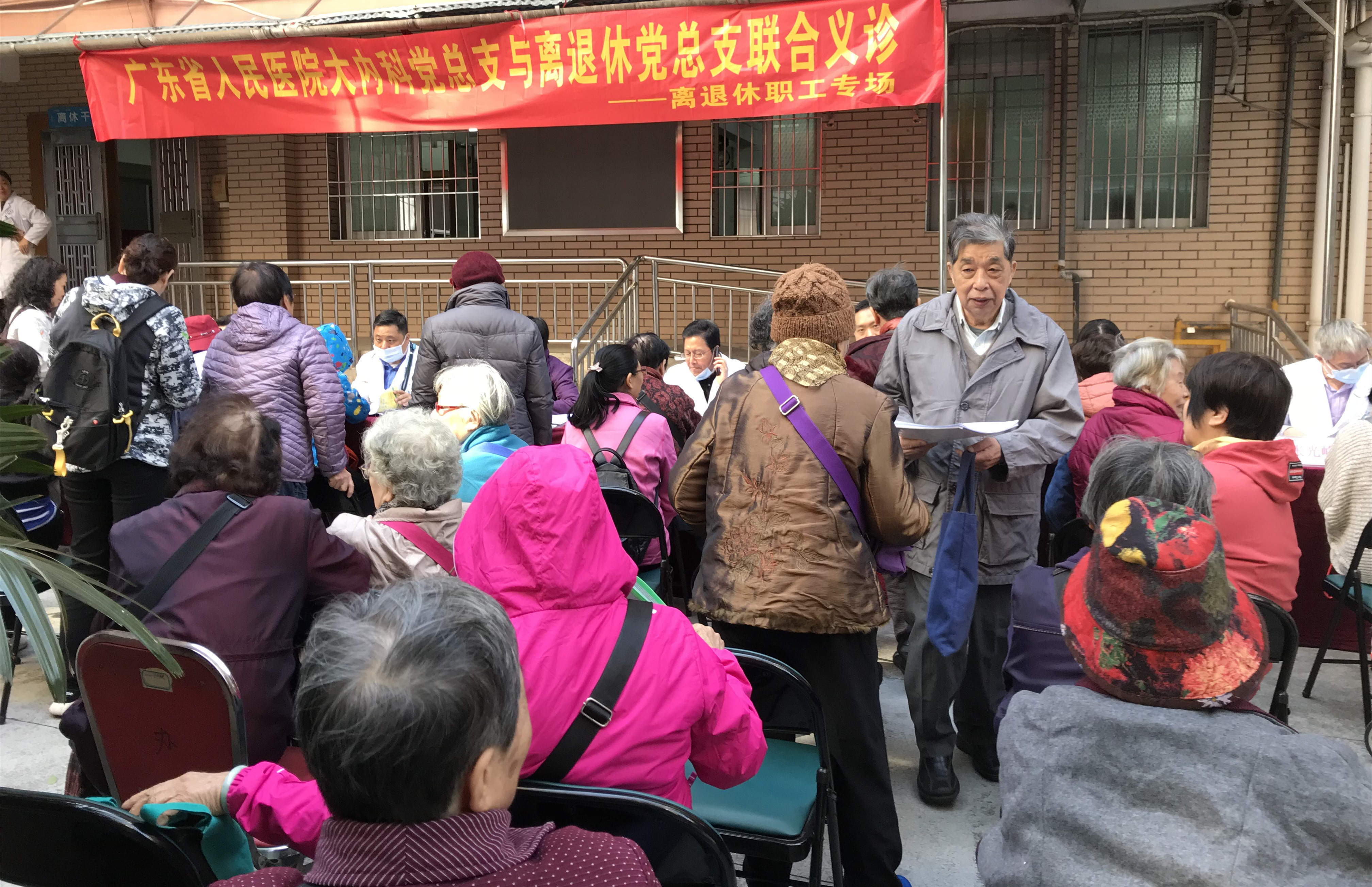 12月3日上午,迎着凛冽的寒风,大内科党总支书记、大内科副主任杜欣同志带领内分泌科、呼吸科、消化内科、肾内科、血液科、神经科、风湿科、皮肤科、感染科、营养科等10位内科专家,来到东川路91号大院老干处,与离退休党总支书记、心内科副主任医师陈剑同志等2位心内科专家共同举办了这场专门为离退休职工的义诊。