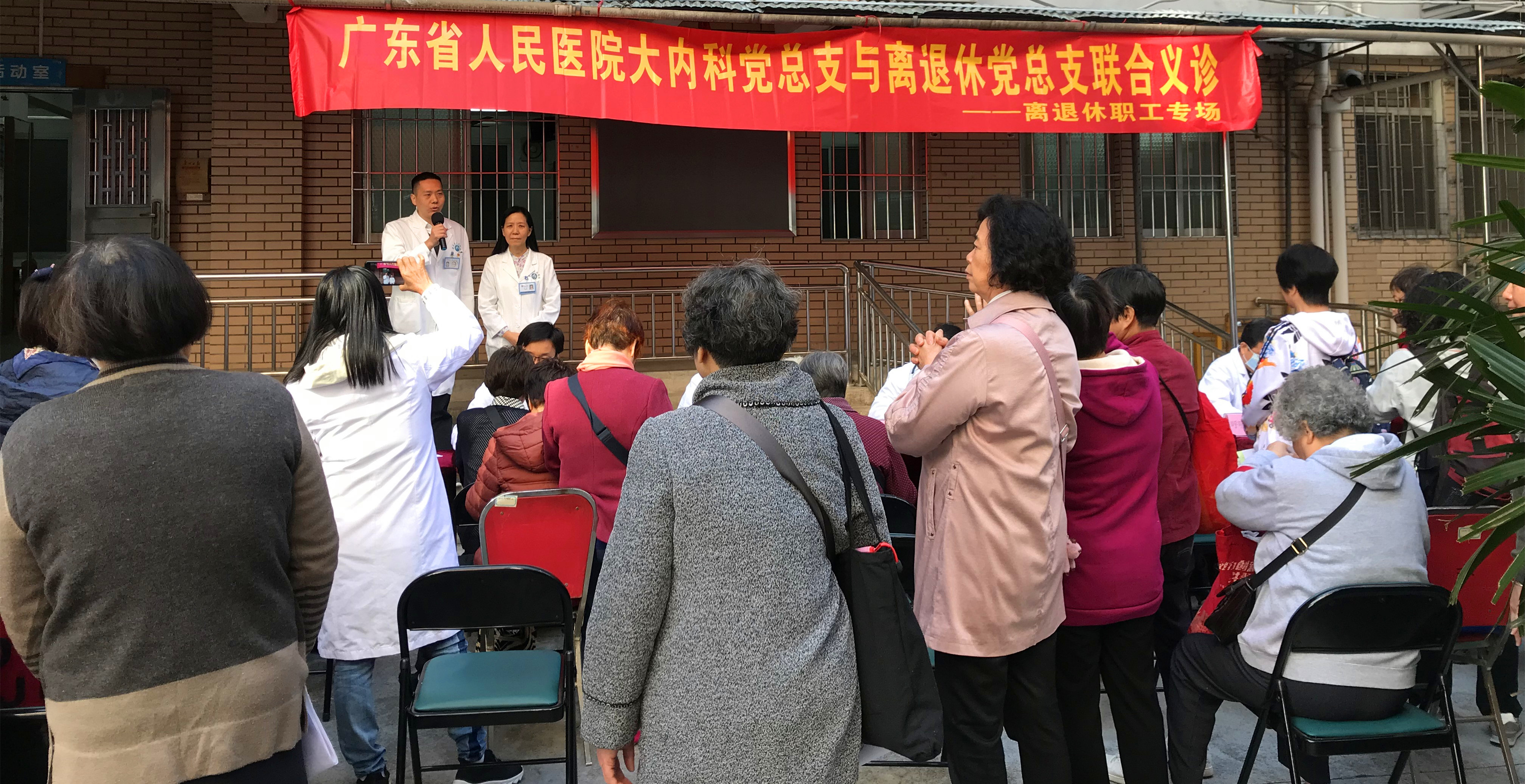 杜欣书记在义诊开场讲话中首先传达了医院领导一直以来对离退休职工身体健康状况的关心,医院党委耿庆山书记多次强调要把老同志的健康管理放在首位。同时非常感谢离退休前辈们对后辈的精心培养,大内科党总支往后要加倍关心和爱护老同志们的身体健康。陈剑书记首先感谢大内科党总支对此次专场义诊的大力支持,希望此次专场义诊能够满足老同志的疾病健康管理需求,缓解离退休职工门诊看病和住院难的问题。离退休党总支将在往后工作中将按照院党委的要求持续改进工作,为老前辈们的健康做好保驾护航。