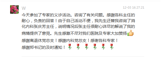 获悉义诊消息的老同志们携带着体检报告及相关的资料,早早来到活动现场。专家们在百忙之中抽出时间积极参加义诊,皮肤科王群主任医师尚在休假中,但他对前辈们的健康情况仍念念不忘,坚持完成义诊。专家们在寒风中热情、细致地为老同志解读体检报告、提出诊治方案、指导用药、测血糖以及健康宣教,老同志们为之纷纷点赞。