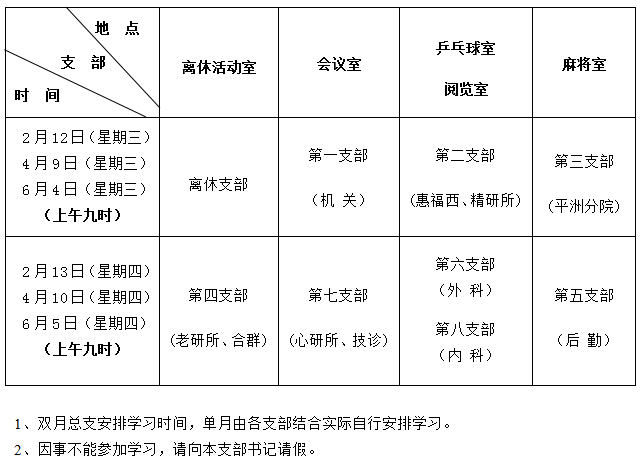 2014年上半年离退休党员组织生活时间安排