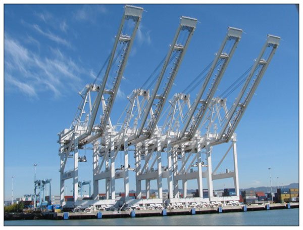 在船的右侧方向,-排排高耸入云的货柜吊车,屹立岸边,把那一箱箱货物堆满在码头或船上。椐资料介绍:本港包括内、中、外港区,主要码头泊位有29个,岸线长6332米,最大水深为12.2米。装卸设备有各种岸吊、门吊、汽车吊、浮吊、拖船及滚装设施等,其中门吊和集装箱吊最大起重能力为50吨,浮吊达100吨。1994年集装箱吞吐量达111.4万标准箱,比1993年增长13.1%。主要出口货物为石油、棉花、机械、化肥、镁、罐头水果及干果等。进口货物主要有铬矿、木材、钢铁、水果、新闻纸、胶合板、咖啡、生铁、麻布、威士忌及日用杂货等。其货物,半数以上属横越北美大陆的中转箱。这便是美国第四大集装箱港,也是世界20个集装箱之一的装卸大港。