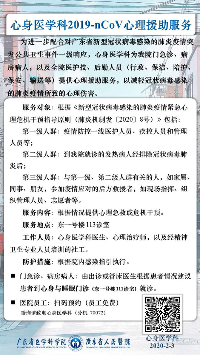 心身医学科新冠病毒疫情心理援助服务
