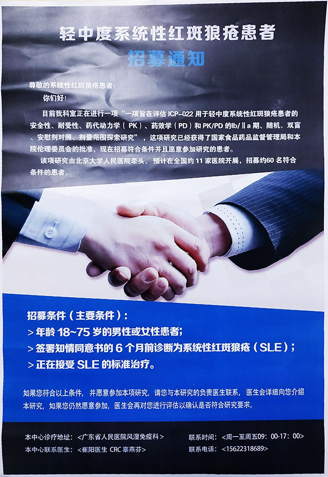 【招募】轻中度系统性红斑狼疮患者
