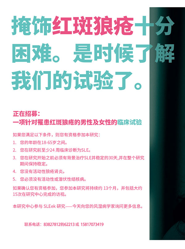 【招募】红斑狼疮患者临床试验