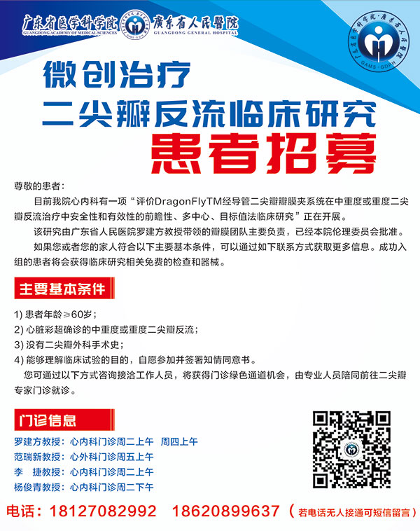 【招募】微创治疗二尖瓣反流临床研究患者